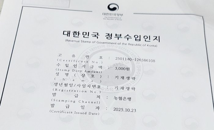 - 인지세(정부수입인지) 3,000원 +취득세 납부비용